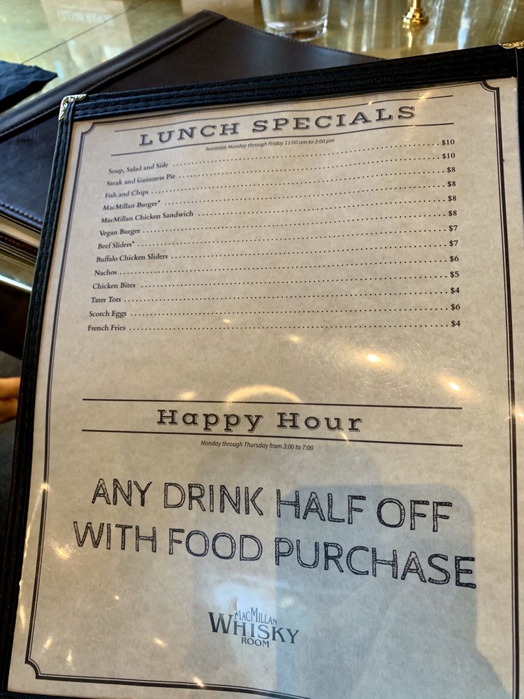 Nestled in the heart of Fairfax, VA, MacMillan Whisky Room offers a unique breakfast and brunch experience with a touch of class and intimacy. This trendy yet casual spot provides a range of vegetarian options and happy hour specials, making it a versatile choice for any occasion. With amenities such as outdoor seating, free Wi-Fi, and a full bar, this establishment is perfect for groups looking to unwind or dance the night away. The gender-neutral restrooms and heated outdoor seating add a thoughtful touch to the overall experience. Don't miss out on the opportunity to try their delectable dishes and impeccable service - MacMillan Whisky Room is a hidden gem waiting to be discovered.